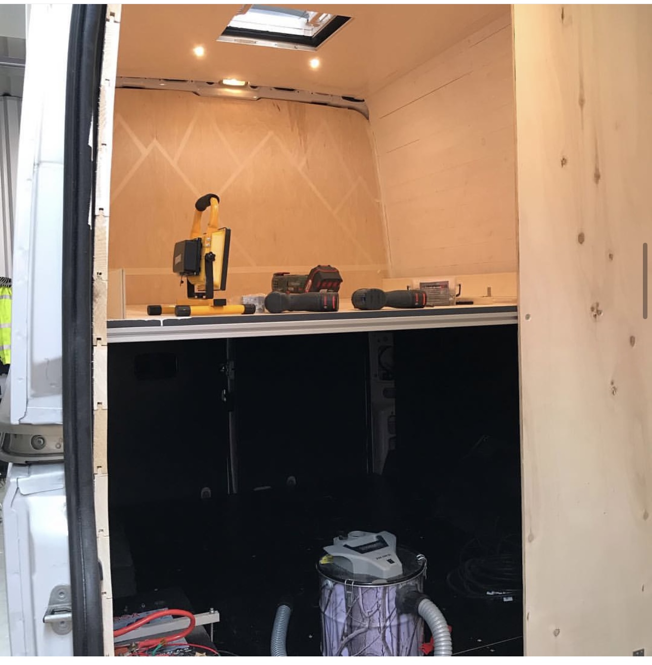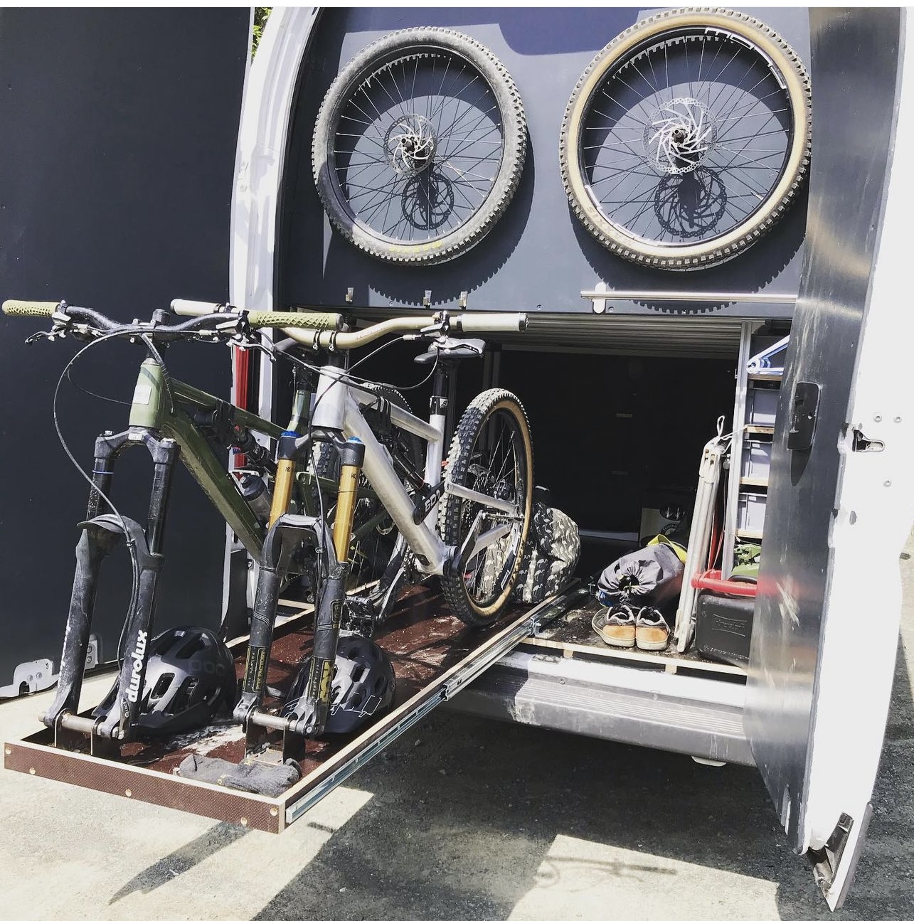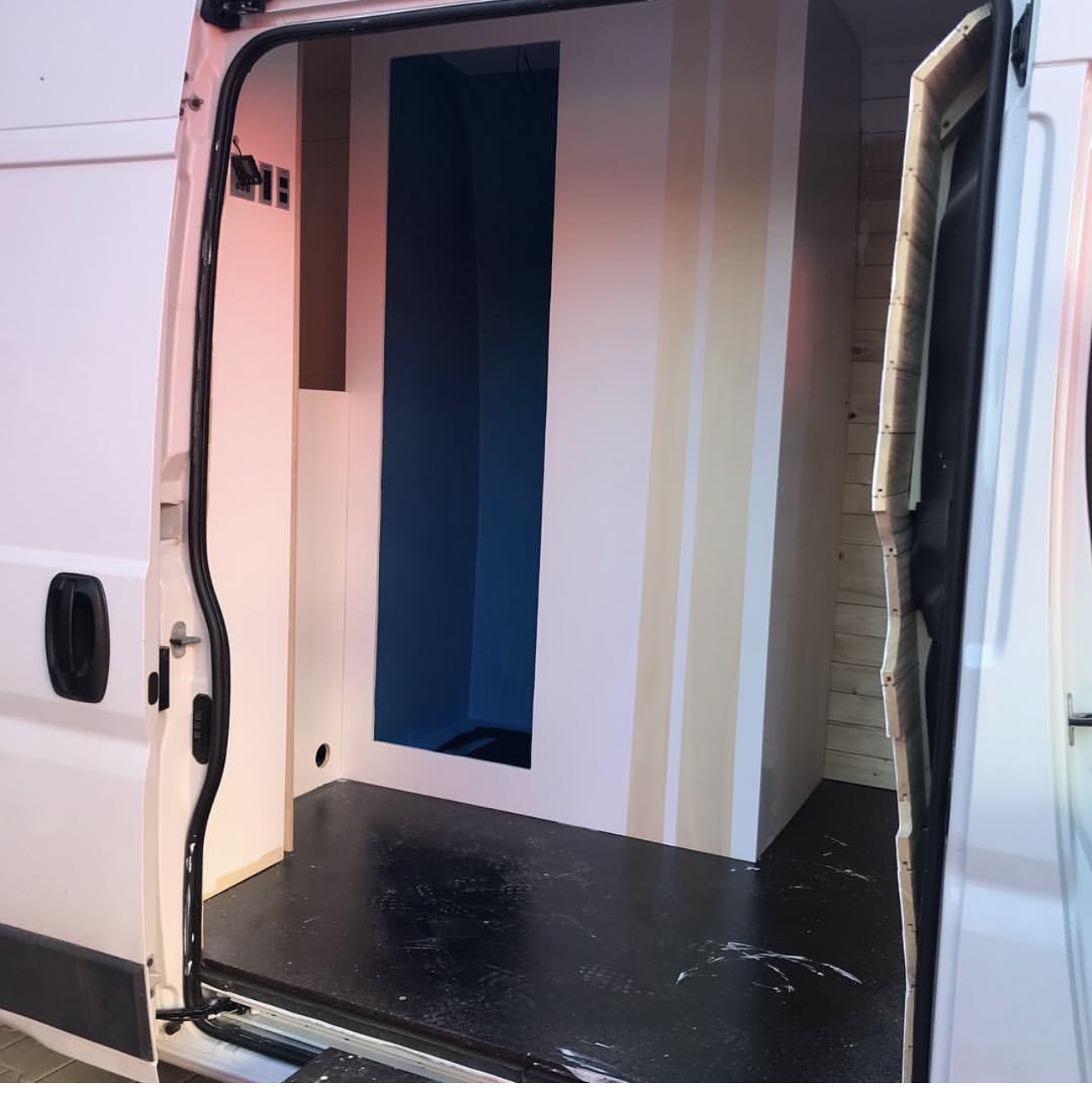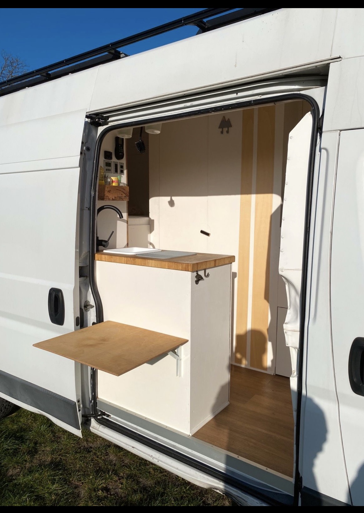- Camperizzazione artigianale pensata per uso weekend, con garage ampio e 2 carrelli portabici (presa per ricarica batterie bici).